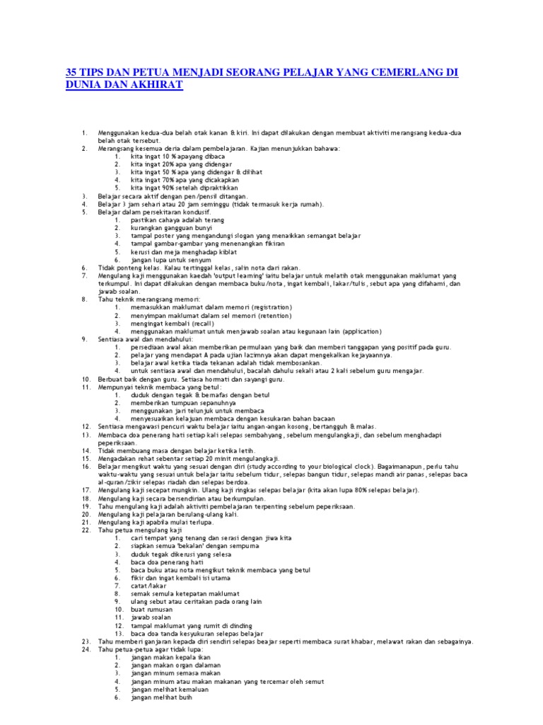 35 Tips Dan Petua Menjadi Seorang Pelajar Yang Cemerlang Di Dunia Dan Akhirat Pdf